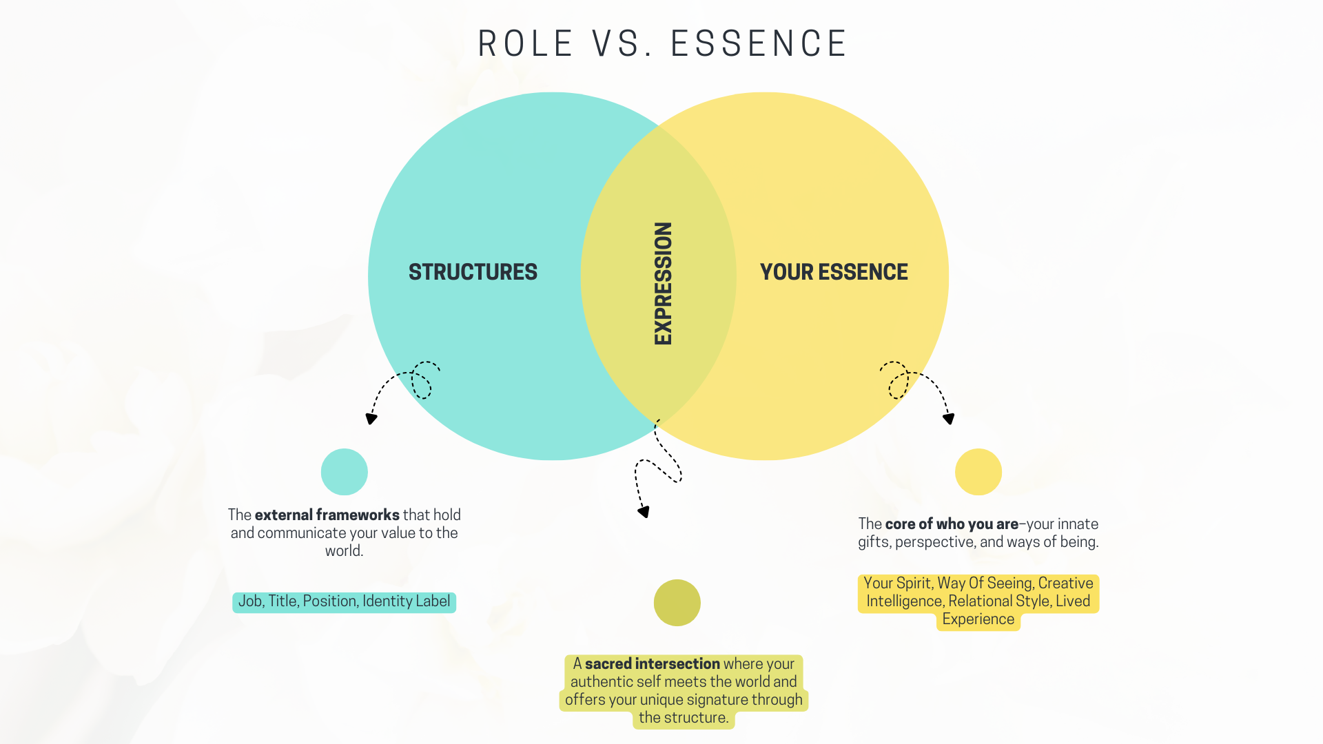 Roles and structures are containers. You are the essence that expresses there. Your wisdom, discernment, creativity, emotional intelligence, and lived experience existed before any title—and they remain when a role ends.